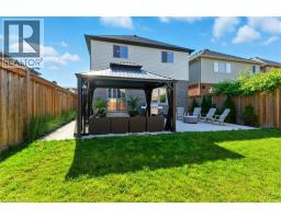 Welcome to this stunning detached two-storey home, complete with a two-car garage and excellent curb appeal highlighted by stamped concrete and no neighbour to the right, offering added privacy. Step inside to soaring ceilings, elegant large-format porcelain tiles, and a striking staircase with wrought-iron spindles. The main level features neutral flooring that flows seamlessly throughout, a spacious dining room perfect for entertaining, and a bright kitchenette with California shutters. The chef’s kitchen impresses with white cabinetry, quartz countertops, stainless steel appliances including a gas range, stylish gold accents, and pot lighting. The adjoining living space is warm and inviting, showcasing an accent wall and electric fireplace. A tasteful powder room with wainscoting completes this floor. Upstairs, you’ll find four generously sized bedrooms, including a massive primary retreat with a statement accent wall and a beautiful ensuite. Both the ensuite and main bath feature quartz countertops, offering timeless quality and style. For added convenience, the laundry is also located on the second level. The backyard is designed for relaxation and entertaining, complete with a gazebo. Located in a highly desirable neighbourhood, this home combines thoughtful upgrades, modern finishes, and a prime setting—perfect for family living. (id:35360)