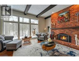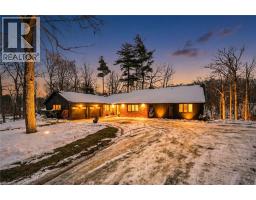 Luxury custom-built bungalow set on over 2 acres of private property, backing directly onto breathtaking woodland, a serene stream, and vibrant wildlife that brings the landscape to life. This fully renovated ranch-style home showcases high-end finishes and refined living in a truly picturesque setting near the Niagara Escarpment. A grand front foyer welcomes you with stunning views and an immediate sense of tranquility. The expansive, chef-inspired kitchen is a true showpiece, featuring heated floors, a large island, granite countertops, a premium Fulgor Milano 6-burner gas stove with double oven, and a walk-in pantry with built-in second oven. Custom cabinetry and millwork throughout highlight exceptional quality of the renovations. Gather around the gas fireplace or host in style at the elegant wet bar, complete with a black walnut countertop and bar fridge. Step out onto the upper deck to barbecue alongside your herb garden or simply unwind while taking in the surrounding natural beauty. The sunken living room showcases floor-to-ceiling windows overlooking the Escarpment and a second gas fireplace. Main-floor primary suite offers a luxurious 5-piece ensuite with heated floors and a walk-in closet, while two additional bedrooms each feature their own private 3-piece ensuites. Convenience is key with main-floor laundry and direct garage access. Fully finished lower level includes home office, exercise room, second kitchen and laundry, bar and games room, fourth bedroom, and a 3-piece bath, along with separate entrance—ideal for guests or multi-generational living. Extensive updates include newer windows and doors, fully redesigned kitchen, five beautifully appointed bathrooms, premium flooring throughout, custom trim and millwork, eavestroughs, decks, and garage doors with openers—offering peace of mind and turnkey luxury. An exceptional opportunity to own a custom-built home that seamlessly blends high-end craftsmanship, natural beauty, and in-town convenience. (id:35360)