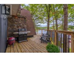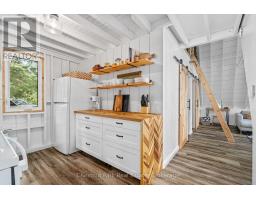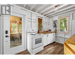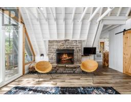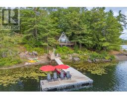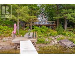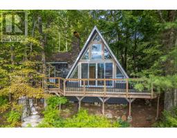 Once and while something very special comes along and you need to grab it - don't wait! "Cedar Point Aframe" on Gibson Lake is available for immediate closing and comes fully turnkey with all furniture, inside and out, along with the water toys. Move right in and enjoy Autumn at this 3 season, 760 sq ft, Aframe cabin perched right at the waters edge. Park at your brand new, private, cleared area, off the lane way and meander down to the cottage. Inside you are greeted by a screened in Muskoka room for dining off the kitchen. Into the living space, the stunning views of Gibson Lake are framed by the A and take your breath away. Both bedrooms are quietly tucked away, and a third queen bed is up the ladder to the loft. This sweet little place has been fully renovated with plenty of upgrades throughout which includes new paint, kitchen, flooring, and fixtures. This cottage is conveniently located right off HWY 400 and is 15 minutes to Port Severn, Mactier and Bala. (id:35360)