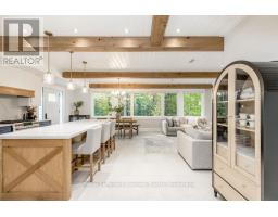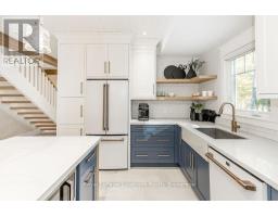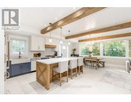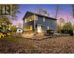 DREAM HOME - Welcome to this stunning, custom-built 3-bed, 3-bath home showcasing exceptional craftsmanship, built in 2023, perfectly positioned backing onto protected land & directly across from the river in beautiful Wasaga Beach. Designed w/ a mix of modern luxury & timeless character, this home captures a century-home feel with its large mouldings, custom doors, & wood beams with a custom-built stone fireplace accenting the main floor. Inside, the bright open-concept layout features wall-to-wall windows overlooking the forest, flooding the space w/ natural light. The custom kitchen is a true showpiece, showcasing a large quartz island, blue and white cabinetry, a mini wine fridge, & a full quartz backsplash. It's finished w/ a high-end signature line of Wi-Fi-enabled appliances, combining elegance & smart convenience for the modern homeowner. The dining area sits beside large windows, while the living room offers aged wood ceiling beams and tongue-and-groove ceilings that bring warmth & texture throughout along w/ the wide-plank white oak hardwood. Upstairs the hardwood stairs, lead to spacious bedrooms, each w/ custom walk-in closets, built-in desks, shiplap ceilings, & designer touches like wallpaper accents & skylights. The primary suite feels like a retreat, featuring a cozy fireplace, luxurious ensuite w/ floating tub, double quartz sinks, black cabinetry, & a walk-in closet w/ custom cabinetry & make up desk perfect for getting ready for the day.Luxury features include- Inside entry to garage with epoxy flooring + custom storage, hydronic in-floor heating, heated driveway & walkways while outdoors, enjoy the built-in BBQ, rubberized surfacing on patios w/ hot tub hook up, sprinkler system, & tranquil forest backdrop w/ cedar trees surround the patio for privacy.Interior features include motorized blinds, smart home system, security cameras, spray-foam insulation, high-efficiency boiler system, & a hard-wired generator. One to remember! (id:35360)