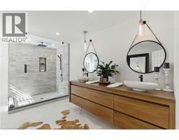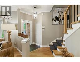 A rarity on Sandcherry! Tucked away in a desirable, tranquil subdivision, 587 Sandcherry Drive leaves a lasting impression from the very first glance. With beautiful gardens and mature trees and a quiet elegance, this home has a presence that feels both welcoming and peaceful. Step inside to find a residence that impresses across the nearly 2,900 square feet of above grade living. Engineered oak floors stretch across the main level, guiding you from one generous space to the next. The formal dining and living area offer grandeur, while the two-storey family room - anchored by a gas fireplace - feels like the perfect perch for gathering. And then there’s the kitchen. Here, you’ll find a kitchen that anticipates every want, with gorgeous white cabinetry, stainless steel appliances, casual dining area and a walk out to the backyard. Upstairs, the primary suite leans into quiet luxury with a soft brick feature wall, a fireplace for moody evenings, and a walk-in closet that feels more like a boutique than storage. The ensuite, flooded with natural light, offers a shower for two and an extended vanity – equal parts indulgent and practical. Two more bedrooms complete this level, one with direct access to the main bath. An additional 1,000 square feet of living space is found in the fully finished basement, where a quiet space has been designed for an at-home office, plus a family room and a powder room. But the real secret is the backyard. Private, enveloped by greenery and designed for lingering. One side offers a hot tub for restorative nights under the stars, while the other hosts a deck for long summer dinners. And beyond the fence? Direct access to the Royal Botanical Gardens – nature, quite literally, in your own backyard. A home that balances elegance and ease. A retreat that feels both grounded and elevated. And yes, a rarity that won’t be waiting long. Don’t be TOO LATE*! *REG TM. RSA. (id:35360)