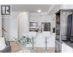 This rare freehold townhome offers nearly 1,300 sq. ft. of thoughtfully designed space in the sought-after Fifty Point / Community Beach area – just a short walk to the lake and seconds to the QEW. Tucked into a friendly neighbourhood and surrounded by parks, trails, and the harbour, it blends convenience with a relaxed, recreational vibe. Inside, you’ll find a bright, open-concept main floor with soaring 9-foot ceilings, a practical layout, and tasteful finishes perfect for both everyday living and entertaining. The kitchen features a functional sit-up island, ample cabinet space, and stainless-steel appliances, opening seamlessly to a spacious dining area and a sun-filled living room. Step through sliding doors to a private balcony with unobstructed views – ideal for morning coffee or evening BBQs. Upstairs features a spacious primary suite with a walk-in closet, a generous second bedroom, a stylish 4-piece bathroom, and laundry – all on the same floor for ease of living. The ground level includes a rare oversized walk-in storage room, plus an inside-entry single car garage with automatic door and additional driveway parking. Low monthly fees cover visitor parking, common elements, and snow removal. (id:35360)