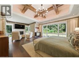 AMAZING! Custom Bungaloft nestled on a spectacular 12-acre property in Burlington. Featuring 5+1 bedrooms, 6 full bathrooms and 2 half baths with an attached triple car garage AND detached double car garage with storage loft! Boasting over 5,400 square feet PLUS an additional 4,300 square feet in the finished lower level. Resort-style exterior with a pool, hot tub, pond, cabana, outdoor kitchen, full bar, built in BBQ area, golf green, two firepits, a fireplace and 5+ forested acres! The main floor offers DUAL primary bedrooms- each with ensuite baths and large walk-in closets. There is also a main floor office and oversized dining room. The kitchen features a large island, stainless steel appliances and a walk-in pantry. The kitchen is open to the living room- which features 12’ ceilings and a stunning wood burning fireplace. There is also an oversized mudroom / laundry room with garage access and two powder rooms. The 2nd level of the home includes 3 large bedrooms and a 5-piece bathroom. The lower level (accessible by stairs OR elevator) features an amazing rec/family room, 6th bedroom, second kitchen, 2 full bathrooms, a wine cellar, gym, sauna, wet bar and plenty of storage! This home was custom built by Glen Oak Homes in 2016 and a main floor addition with full basement was added in 2024. The entire property was fully landscaped in 2023/2024. Interior and exterior ‘smart’ features throughout, highly efficient and fully private- a true paradise. Luxury Certified (id:35360)