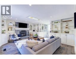 Welcome to 6 Mays Crescent, a rare find on one of Waterdown's most sought-after crescents. Just steps to downtown shops, cafés, restaurants, parks, and trails, this home combines a prime location with extensive updates inside and out. The bright, open layout features a chef's kitchen with SS gas stove, double ovens, fridge, built-in dishwasher, custom cabinetry, abundant prep space, and two walkouts to the backyard. The main level also offers a dedicated office, an elegant dining area, a family room with custom built-ins, a wood-burning fireplace and the 3rd main level walk out. A laundry-powder room and front living room with a reading nook, and pool views complete the main floor. The second lvl offers a great layout with three bedrooms and two full baths, including a private primary ensuite. The finished basement (2024) with side entrance includes a Dolby Atmos home theatre, hardwired indoor/outdoor speakers, PAX storage, gym space, a storage room and 2 pc bath. Recent improvements include new windows and doors (2024), spray-foamed garage ceiling, freshly painted siding/soffits, and chimney brick rebuild with metal insert. The 59x150 ft landscaped lot is a showstopper with a pergola-covered dining area, natural gas hook up for BBQ, saltwater pool with safety cover, large grassy play space with tree house, and smart Rainbird irrigation system with Rachio controller. Whether you're hosting friends, enjoying a movie in your state-of-the-art basement, or strolling to the local bakery, 6 Mays Crescent is the one you've been waiting for. (id:35360)