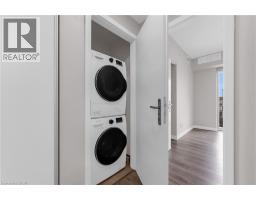 $749.58 MonthlyWelcome to unit 307. This rare 2-bedroom, 2-bath condo located in the heart of Kitchener. The unit is 823 sq. ft and the largest 2-bedroom unit in the building. Located on the podium level, you can skip the elevator and access your unit directly from your owned parking spot on the 3rd floor. The layout boasts a spacious primary bedroom with a walk-in closet, while the second bedroom features double closets, all fitted with upgraded organizers. Additional highlights include automated powered roller shades, private balcony and in-suite laundry. The condo is close to it all- LRT access, Conestoga College, government buildings and great restaurants. Don't miss out on this rare opportunity to own a spacious unit in one of Kitchener’s premier buildings! (id:35360)