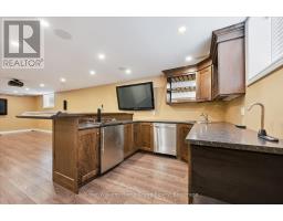 Exceptional 4-Bedroom Family Home Backing Onto Green Space in Fergus. Welcome to this beautifully maintained 2,240 sq ft two-storey home, ideally situated on a premium lot backing onto green space for added privacy and serene views. The fully fenced backyard features a deck prepped for a hot tub, along with a garden shed for convenient outdoor storage. Inside, you'll find a well-designed layout offering formal living and dining areas, along with a spacious open-concept kitchen, breakfast area, and family room. The family room includes a cozy gas fireplace and walkout to the backyard deck, perfect for entertaining or relaxing year-round. Upstairs, the home boasts four generous bedrooms and hardwood and tile flooring throughout - with carpet only on the staircase for added comfort and safety. The lower level isa true entertainer's space, featuring a custom bar, built-ins, bookshelves, and projector setup - ideal for movie nights or game day gatherings. Additional features include a double car attached garage with heat and extra storage, main floor laundry and a great location close to parks, trails, schools, and amenities. (id:35360)