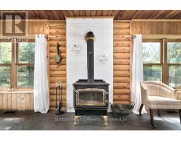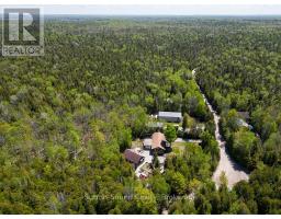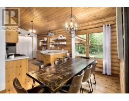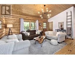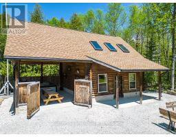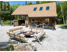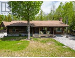 BOAT LAKE FAMILY RETREAT! This incredible property offers a main house, 2 story bunkie, smaller bunkie with loft, an outdoor covered bar, fire pit and outdoor numerous seating areas. The Conservation Land backdrop (46 Acres) creates a quiet and secluded retreat for the family. The log home blends beautifully with it's natural environment with an interior show casing modern design and finishes. (Professionally designed) This bungalow features 3 bed 2 baths, living room, dining room, updated kitchen, family room with f/p and exudes warmth and character only a log home brings. The Rec room has heated floors and an airtight wood stove. The secondary home/bunkie is perfect for visits from family and friends with main floor living room with f/p, kitchen and 2 bedrooms upstairs. Entertain in the covered bar, enjoy the fire pit or relax in the hot tub. Only 30 second walk to Boat Lake for endless summer days on the water. Boat Lake Cottagers Association owns water access and roads. See our video for a true reflection of this unique property. (id:35360)