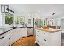 Welcome to this beautifully refreshed 4-bedroom, 4-bathroom custom home set on a private 0.7-acre tree-lined lot just minutes from downtown Fergus. With approximately 2,800 sq ft of living space, this home features a renovated kitchen with granite countertops, walk-in pantry, and coffee bar, an open-concept main floor perfect for entertaining, and a spacious primary suite with a large walk-in closet and a versatile nook ideal for an office, dressing room, or reading area. The newly reorganized second level offers private access to all bedrooms, a Jack and Jill bathroom between two bedrooms, a stunning new 4-piece family bath, and a beautifully finished ensuite in the primary. A main floor powder room adds convenience, and the family room connects directly to the laundry, which could be converted back to a 3-piece bath if one-level living is desired. The mostly unfinished basement includes a finished room perfect for an office, guest room, or potential fifth bedroom. An attached 2-car garage, front deck for enjoying the afternoon and a back deck surrounded by mature trees and perennial gardens complete this quiet, spacious, and move-in-ready in-town retreat truly one of a kind. (id:35360)