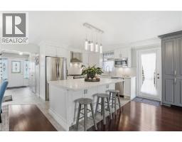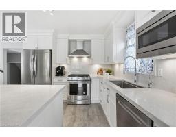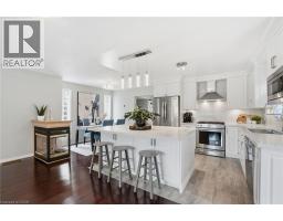 Welcome to this beautifully maintained detached home featuring a classic brick exterior, double-car garage, and inviting covered front porch with aggregate concrete detailing that creates excellent curb appeal. Step inside to a bright and welcoming foyer highlighted by an elegant staircase and beautiful hardwood floors that extend throughout the main level. A thoughtfully designed layout makes this home ideal for both everyday living and entertaining, complemented by custom California shutters throughout. The open-concept living and dining area is filled with natural light and offers the perfect setting for family gatherings and special occasions. The updated kitchen serves as the heart of the home, showcasing quartz countertops, high-end appliances, soft-close cabinetry, and a large centre island with seating and convenient pull-out drawers on both sides, providing exceptional prep space and functionality. The kitchen flows seamlessly into the cozy family room and large windows overlooking the backyard, creating a warm and inviting space to relax or entertain. Upstairs, you’ll find spacious bedrooms with beautiful architectural details, including vaulted ceilings and large arched windows that bring in abundant natural light. The primary bedroom features a large walk-in closet and private ensuite, while the additional bedrooms offer flexibility for family living, guests, or a home office. The finished basement adds valuable additional living space, complete with new flooring and a crawl space that provides extra storage. Enjoy the private backyard featuring a deck ideal for outdoor dining and entertaining, along with a low-maintenance yard designed for easy upkeep. Located in a desirable family-friendly Waterdown neighbourhood, this home is close to parks, trails, schools, shopping, and everyday amenities, with convenient access to Highway 403, 407, Aldershot GO Station, Burlington, Hamilton, and the GTA. (id:35360)