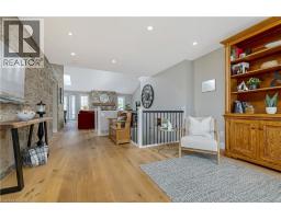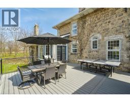 This enchanting stone home on a meticulously landscaped 1.98-acre lot, originally built in 1906, beautifully blends timeless history with contemporary living. The original stone craftsmanship stands as a testament to its heritage, while thoughtful renovations provide the perfect balance of old-world charm and modern comfort. This home features three spacious bedrooms, including a luxurious primary suite with a large walk-in closet, custom built-ins, and a striking shiplap ceiling. The spa-inspired 5-piece ensuite includes a deep soaking tub and a glass-enclosed rain shower, offering a serene retreat. The additional bedrooms share a stylishly updated 3-piece bathroom. At the heart of the home is a beautifully renovated gourmet kitchen, complete with stainless steel appliances, a classic farmhouse sink, and a spacious center island, ideal for both cooking and entertaining. The dining room, which features a built-in coffee bar, flows seamlessly into the cozy living room, creating a warm and inviting ambiance. Natural light pours into the charming breakfast nook, which opens onto a low-maintenance Trex deck with sleek glass railings. This outdoor space leads to a 15' x 14' cedar-shake gazebo, an ideal setting for enjoying a morning coffee or hosting evening gatherings. The family room, with its vaulted ceiling, recessed lighting, and inviting gas fireplace, provides the perfect spot to unwind. A den at the front of the home, showcasing exposed stone walls, offers a quiet retreat for reading or reflection. Completing the main floor is a convenient mudroom with garage access, main-floor laundry, and a stylish powder room. The finished lower level includes a bright recreation room with a gas fireplace, a kitchenette with a separate entrance, and a 4-piece bath. The original basement, with exposed stone walls and concrete floors, offers versatile space for storage or imagination. (id:35360)