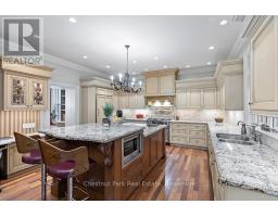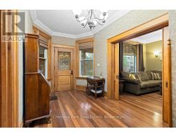 Discover a rare architectural gem this grand 2.5-storey century home masterfully blends early 1900s craftsmanship with modern comfort. Thoughtfully expanded in 2006, it offers over 3,000 sq. ft. of beautifully appointed living space in downtown Owen Sound. From the stately 35 ft covered front porch, ideal for morning coffee or evening cocktails, to the elegant interior, every detail reflects timeless character. Inside, rich hardwood floors, high baseboards, elegant mouldings, and stained-glass windows evoke warmth and sophistication. The designer kitchen is a chefs dream, featuring granite countertops, a large island with prep sink, warming drawer, and wine fridge. A butlers pantry adds storage and function, while the adjoining eat-in area opens to a private deck overlooking a mature, picturesque backyard with hot tub. A stunning custom mudroom with built-ins and heated floors completes the main level. Entertain in the formal dining room or unwind in the inviting living room. Upstairs, the 2023-renovated main bath offers spa-like luxury with heated tile floors, double sinks, glass shower, and a claw-foot soaker tub. Four distinctive bedrooms provide generous space and charm with built-in dressers and closets. The finished third-floor loft, once a self-contained suite offers endless versatility. With a spacious family room, bedroom, and 3-piece ensuite, its ideal as a studio, teen retreat, guest quarters, or in-law suite. Perfectly located just steps from downtown shops, restaurants, the farmers market, library, and cultural attractions, this remarkable home combines modern living with historic charm. A truly one-of-a-kind residence, timeless, elegant, and perfect for families or multigenerational living. Own a cherished piece of Owen Sounds history, with room to live, gather, and grow. (id:35360)