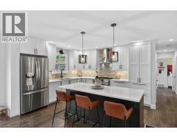 Absolutely stunning 4 bedroom plus den, 3.5 bathroom renovated home on a quiet dead end street in Waterdown's beautiful core! This is the home you have dreamed of! The gorgeous exterior finishes makes this home an absolute stand out! A large addition was completed in 2023 almost doubling the square footage of this home. The family and entertaining friendly open layout on the main floor features a beautiful kitchen with large island, quartz counters and stainless appliances. A large dining area with sliders to the rear yard and great room with gorgeous gas fireplace flanked by built-ins provide seamless flow for keeping an eye on the kids or staying engaged with guests while preparing a meal. A built-in coffee servery is another part of the incredible detail and thought put into this home! A main floor laundry and powder room area provides access to the rear yard. In the other end of the main floor you will find 3 bedrooms and a 4 piece bathroom. A hardwood staircase takes you to the absolutely incredible primary retreat! This one will take your breath away featuring vaulted and timber beam ceiling, french doors to a juliette balcony, an expansive walk-in closet with built-ins and a gorgeous ensuite with stand alone soaker tub, glass enclosed shower and a double custom vanity! The lower level is completely finished with a large family room, play area, workout space, large storage area, den and mudroom with built-ins with access to the attached garage. The spacious backyard has a large upper deck and a gorgeous stone patio with firepit. BONUS is a custom 10 x 12 outbuilding matching the home in finishes. It is insulated and has heating and cooling - ideal for a home office, he/she shed or workshop! This location can't be beat for those looking for a quiet spot to call home, yet conveniently located in the hub of it all, walking distance to schools, shops, restaurants, trails and Memorial Park. Homes like this rarely come along! (id:35360)
