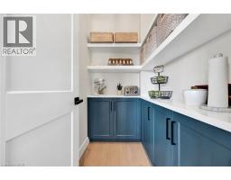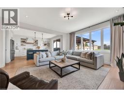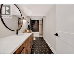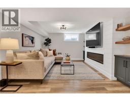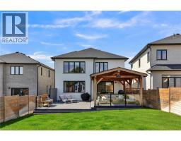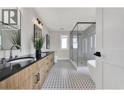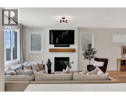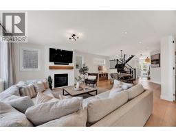 Architecturally bold and unmistakably modern, this beautifully executed residence in a prime Doon location delivers style, function, and space in equal measure. Clean rooflines, oversized windows, and a mix of stone, brick, and wood accents define the striking exterior, while inside, over 3,000 sq. ft. of finished living space has been curated with today’s modern family in mind. At the heart of the home, the custom kitchen pairs white shaker cabinetry with open wood shelving and a statement navy island. Quartz counters, a farmhouse sink, built-in appliances, and designer lighting create an inviting and practical workspace. The adjoining living area is bright and open, with a gas fireplace and expansive windows framing views of the extra-deep backyard. Upstairs, you’ll find four generous bedrooms and a laundry room with clever cabinetry and patterned tile for style and function. The primary suite features a walk-in closet and a well-appointed ensuite with a glass shower, freestanding tub, dual sinks, and bold monochromatic flooring. The fully finished basement is a major highlight—designed with a kids’ zone, a cozy media area, and a sleek bathroom, it’s ready for everything from playdates to movie nights. Outside, the covered deck with wood beams and glass railings creates a true extension of your living space, perfect for entertaining or relaxing. Set on a quiet street in highly desirable Doon, this home combines cutting-edge design with access to nature, schools, and amenities. Commuters will love the short, under-5-minute drive to Highway 401, making this property as convenient as it is visually impactful. (id:35360)