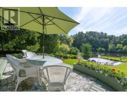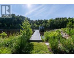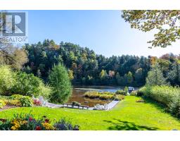 Complete privacy featured on one of the best lots on Muskoka River on one of the quietest in town streets in Huntsville. The gently sloped thoughtfully and professionally landscaped property offers a private cove with a fabulous fountain and spectacular view of the Lookout mountain and Muskoka forest...you will forget you live only a couple of blocks to the vibrant downtown core. The lovely recreational residence is nestled back from the road and is a stand out from the street or the river. Beautiful 4 bedroom home has been a beloved family cottage for many years. The interior features the quintessential open concept primary rooms with vaulted ceilings and window wall overlooking your breathtaking property and riverfront. Living room with attractive gas fireplace, kitchen seating at counter, dining suitable for those who like to entertain, main level family or sitting room with views of your porch and gardens. Hardwood floors, front foyer with arched entry, bedrooms with corner windows to maximize natural light, are all thoughtful design features of this beautiful home. The 2nd level is an ideal office or kids room. Lower level features another bright beautiful room currently used as a bedroom but can be a gym, office or whatever you may need. The double car garage has a rear door for lawn mower, kayaks, etc. The lot features a private cove with a high end composite walkway around it and an idyllic fountain in the middle. The dock is also composite and has ample space for your boat parking. There is a large patio on the riverside for dining and bbqing. Another granite sitting area is for thoughtful viewing of the panoramic views that you will want to take in with your coffee or glass of wine. The lot, the residence, and the views create a rare package that is difficult to find. This one of a kind opportunity includes some furnishings and could be available for you to enjoy mid August or after. (id:35360)