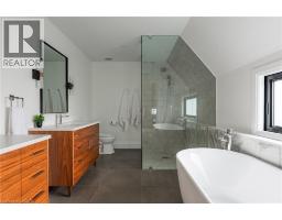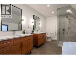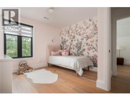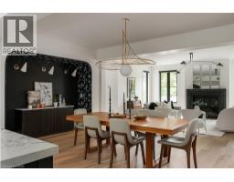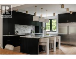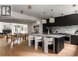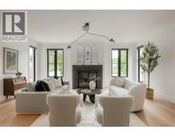 Nestled on a private cul-de-sac in the prestigious LaSalle neighbourhood, this luxurious custom home, rebuilt & re-imagined in 2024 by Interface Construction, integrating part of the existing foundation, offers 3,481 sq. ft. of finished living space above grade. Just a short walk to the Burlington Golf & Country Club and minutes from Lake Ontario and LaSalle Park, the location is as desirable as it is convenient. Step inside to a grand foyer with soaring vaulted ceilings leading into the open-concept living and dining areas. The living room is anchored by a Trumeau fireplace, creating a warm and inviting ambiance, while the dining room with decorative nook is perfect for hosting. The chef’s kitchen combines function and flow, featuring a large island, premium appliances, custom cabinetry by Imatree Cabinets & Woodworking, and seamless connection to both the dining room and the family room. With vaulted ceilings, expansive windows, and views of the rear yard, the family room is filled with natural light. A mudroom with powder room access and a rare drive-through garage entry complete the main floor. Upstairs, a unique recreation room adds versatile living space, ideal as a fourth bedroom, lounge, media room, office, or homework hub. The upper level also includes a sitting area overlooking the foyer, a serene primary suite with vaulted ceilings, custom cabinetry, spa-like 5-piece ensuite, and walk-in closet, plus two additional spacious bedrooms with a shared 4-piece bath. Designed for both relaxation and entertaining, the backyard offers two expansive concrete patios, professional landscaping and mature trees for privacy. From its elegant interiors to its private outdoor spaces, this home was designed for both everyday living and unforgettable entertaining. (id:35360)