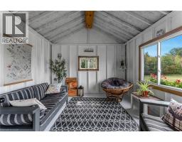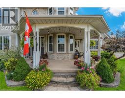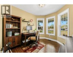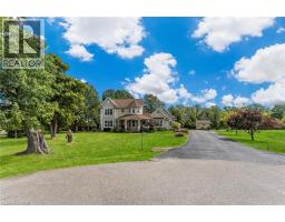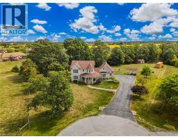 If a country home is what you are looking for, look no further. You will love this 2-storey home on an acre of land at the end of a quiet cul-de-sac. An inviting wrap-around front porch that leads you inside to the main floor features a bright office, powder room, and an eat-in kitchen/dining with granite counters and porcelain tile flooring that flows through to the foyer and powder room. The eat-in kitchen opens to a large back deck with a gazebo. Step into the formal dining room with lots of natural light, the living room highlighted by rich hardwood flooring and a cozy gas fireplace. Upstairs you’ll find a beautiful, spacious primary suite with a walk-through closet with custom cabinetry and an updated 4 pc ensuite. Two generous sized bedrooms each with closet space and natural light. A 4-pc bath, and a convenient laundry room. The finished bonus room above the double car garage is great for an extra bedroom, guest room or den. In the basement, a large rec room/exercise room, a crafting room and workshop space and a cold storage. A long paved driveway with parking for up to 10 vehicles. The double garage comes with two automatic door openers. Outside, plenty of shade from all of the mature oak trees, and two sheds - a charming “she-shed”, and a garden shed for extra storage. A double garage with two automatic door openers. You will love the beautiful yard with plenty of mature shade trees. This is a must-see! A rare opportunity to enjoy small-town living in a well-loved family home. (id:35360)
